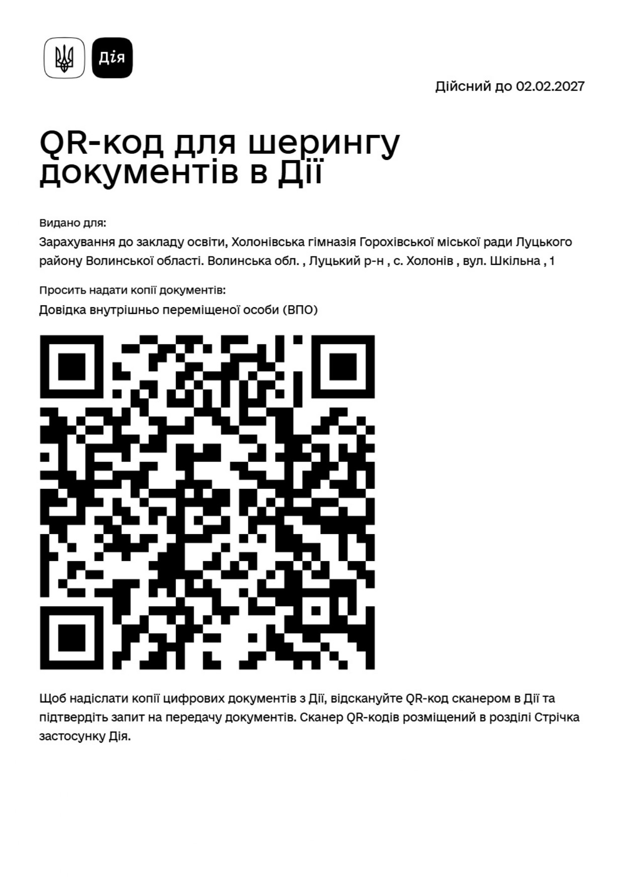 Зарахування до закладу освіти для внутрішньо переміщених осіб